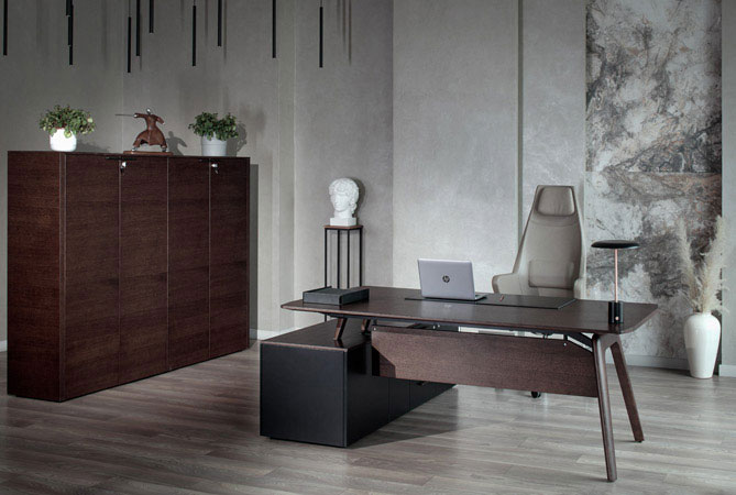 В ассортименте компании представлены кабинеты для руководителей (шпон, стекло, натуральная кожа, лакокраска), мебель для сотрудников