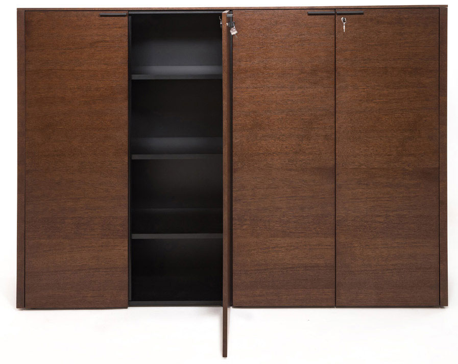 Система хранения представлена двух-, четырех-, шестистворчатыми шкафами высотой 78 см и 155 см.